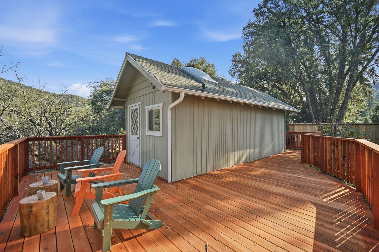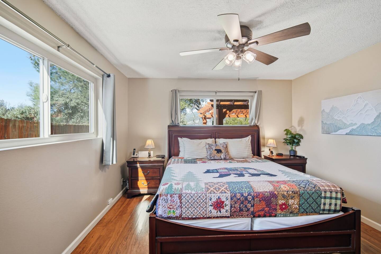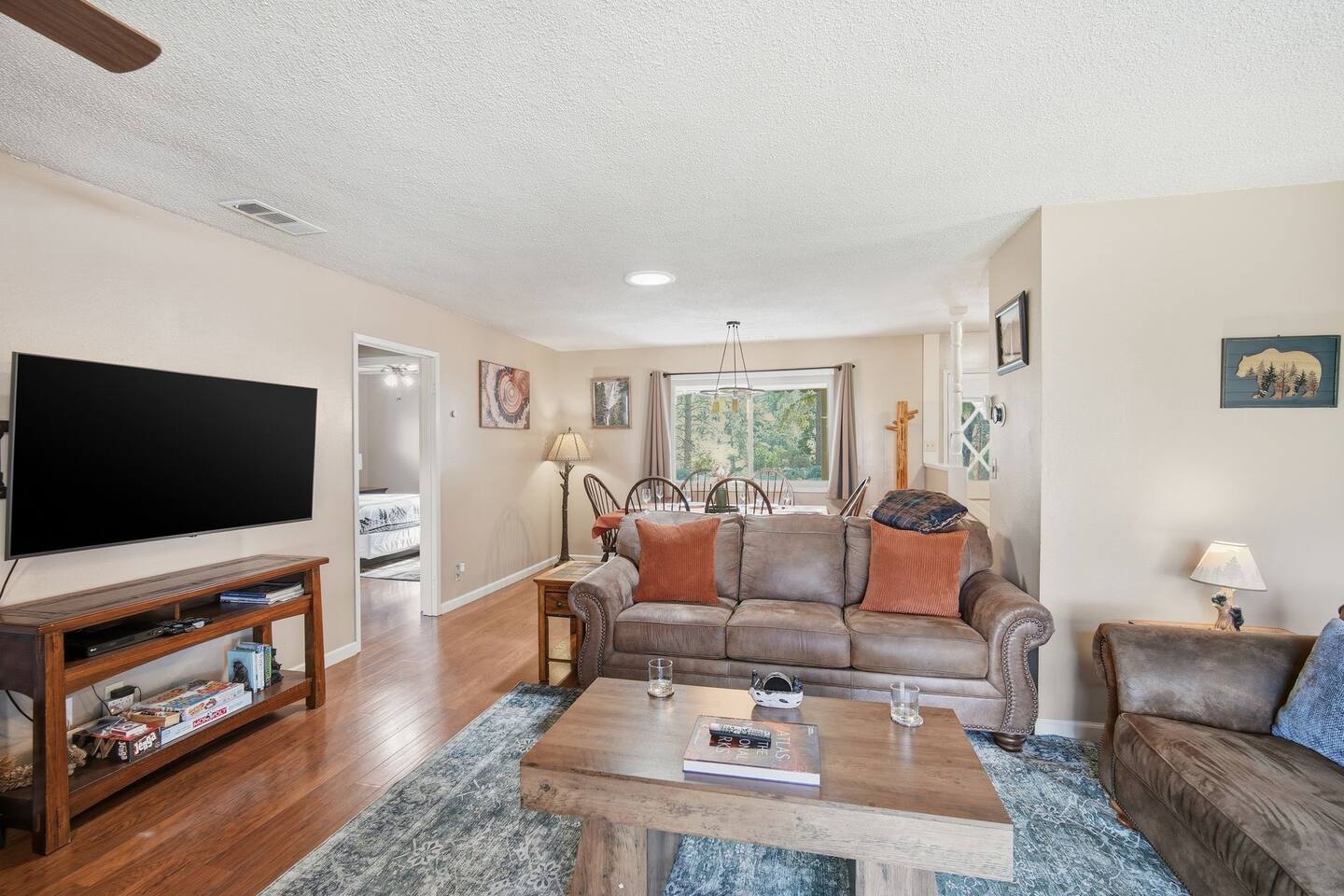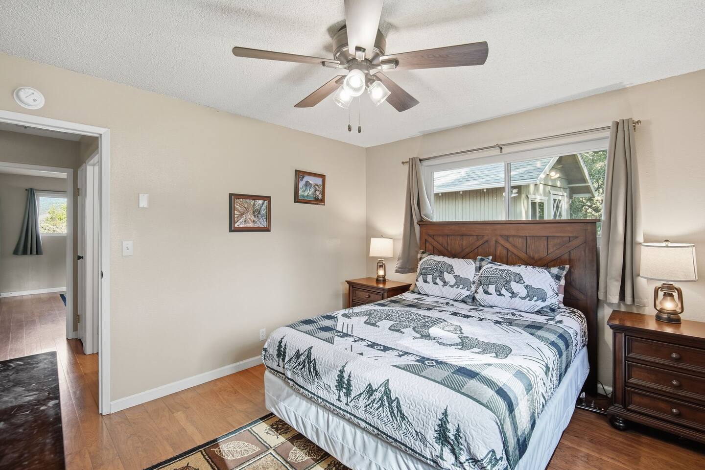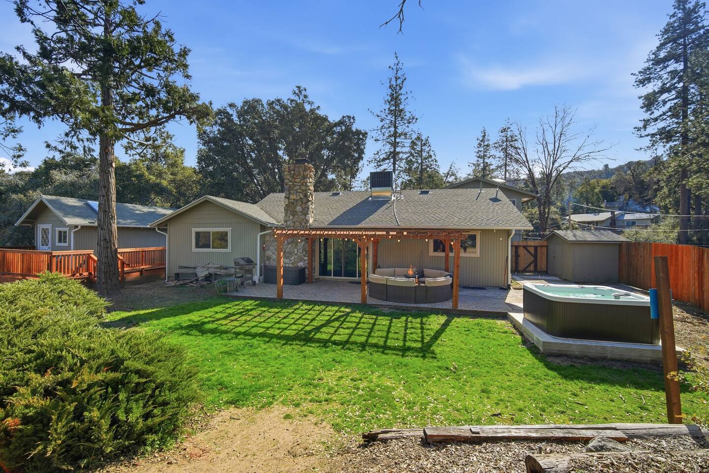 🏠 Main House (3BR / 2BA | Sleeps up to 8) Perfect for families or the main group gathering space. - 2 Queen bedrooms - Kid-friendly bunk room - Cozy living room with queen sofa bed - Fully stocked kitchen - TVs with Netflix in every room 🌲 Outdoor Living Enjoy peaceful forest views and spaces designed to help you unwind after a day of adventure: - private hot tub - Spacious deck - Outdoor patio with fireplace - BBQ grill - Yard games for all ages 📍 Location Highlights - 3 miles to Bass Lake - 20 minutes to Yosemite South Entrance - 10 minutes to town (groceries, dining, coffee, gas,) ✍🏼 Good to Know - Keypad entry - Indoor fireplace available upon request (chimney cleaning fee applies) - EV charger on site (bring your own cable) - Game table with foosball, ping pong, chess, checkers & more