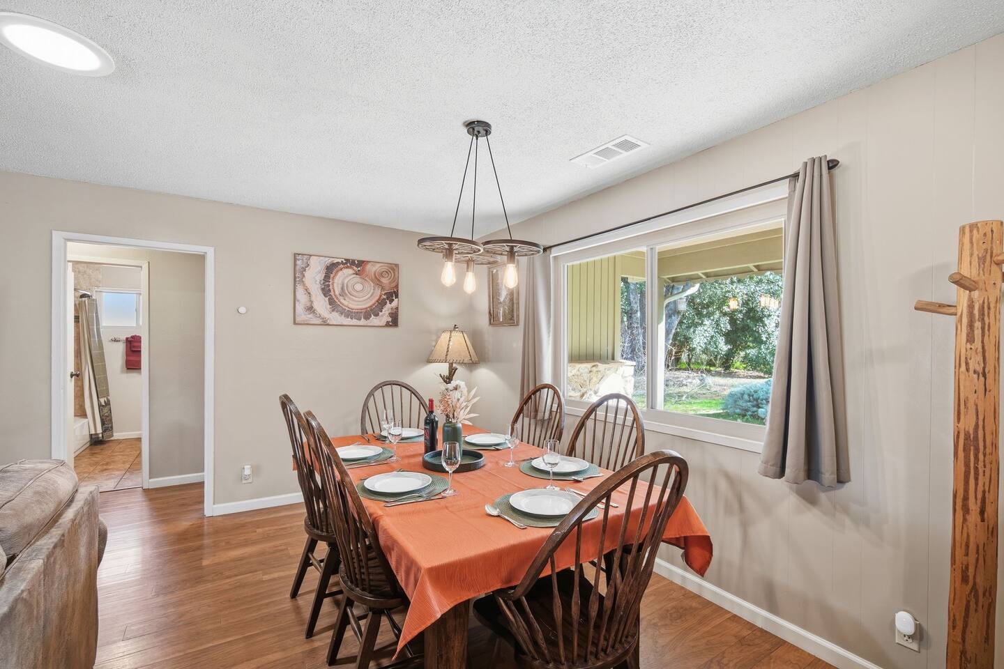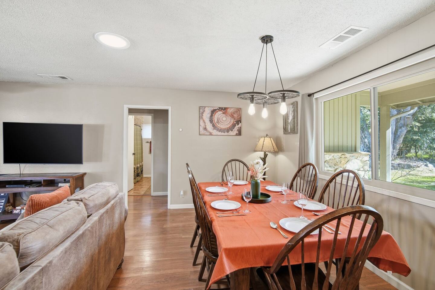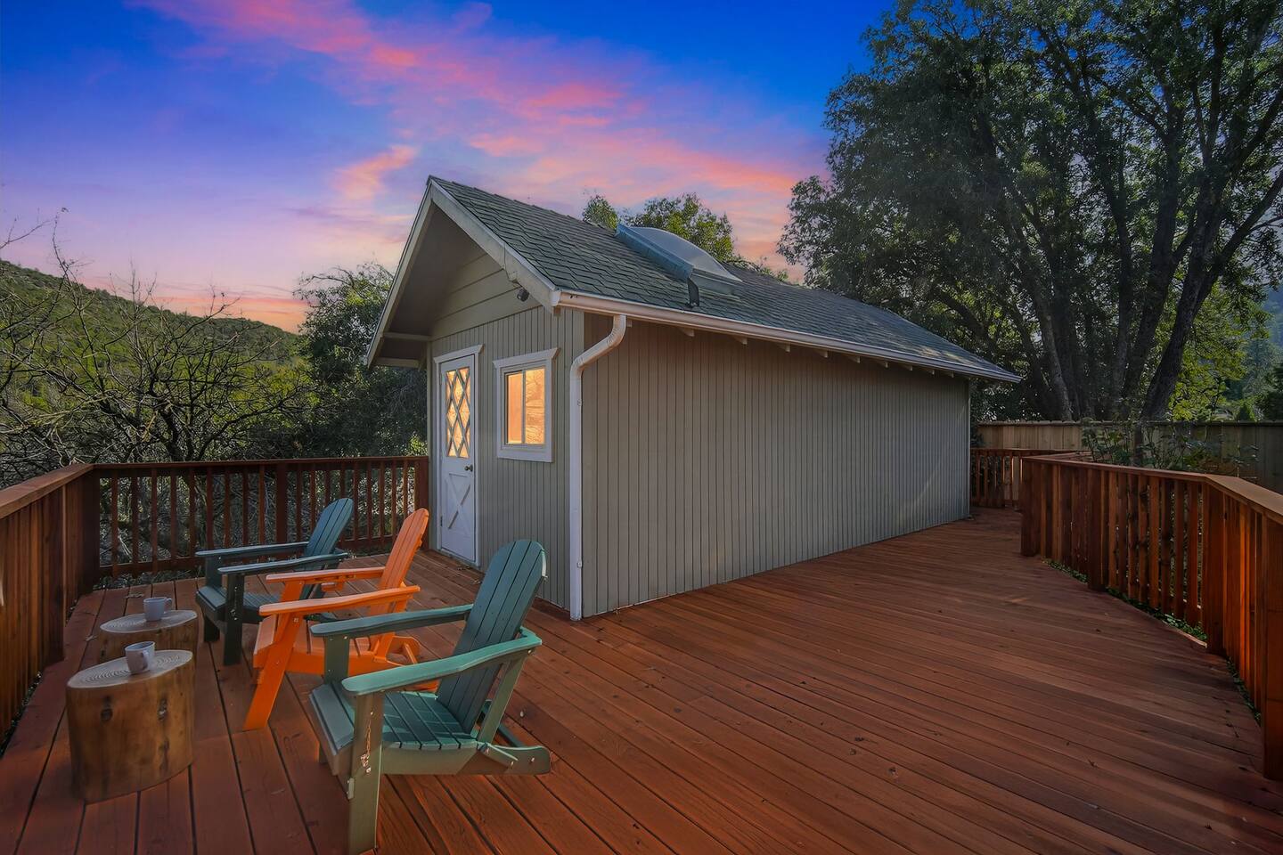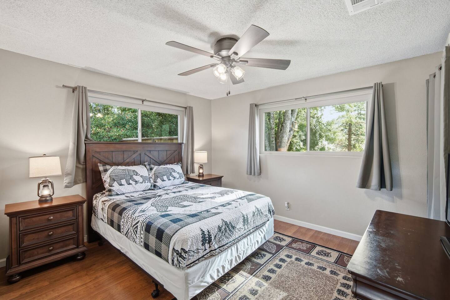 🏠 Main House (3BR / 2BA | Sleeps up to 8) Perfect for families or the main group gathering space. - 2 Queen bedrooms - Kid-friendly bunk room - Cozy living room with queen sofa bed - Fully stocked kitchen - TVs with Netflix in every room 🌲 Outdoor Living Enjoy peaceful forest views and spaces designed to help you unwind after a day of adventure: - private hot tub - Spacious deck - Outdoor patio with fireplace - BBQ grill - Yard games for all ages 📍 Location Highlights - 3 miles to Bass Lake - 20 minutes to Yosemite South Entrance - 10 minutes to town (groceries, dining, coffee, gas,) ✍🏼 Good to Know - Keypad entry - Indoor fireplace available upon request (chimney cleaning fee applies) - EV charger on site (bring your own cable) - Game table with foosball, ping pong, chess, checkers & more