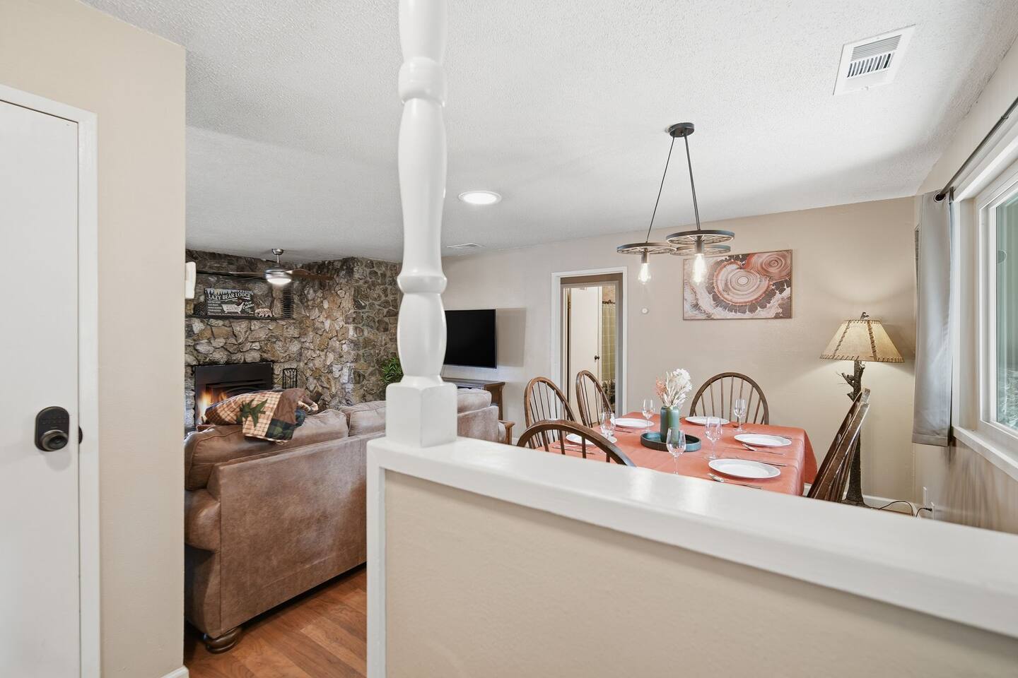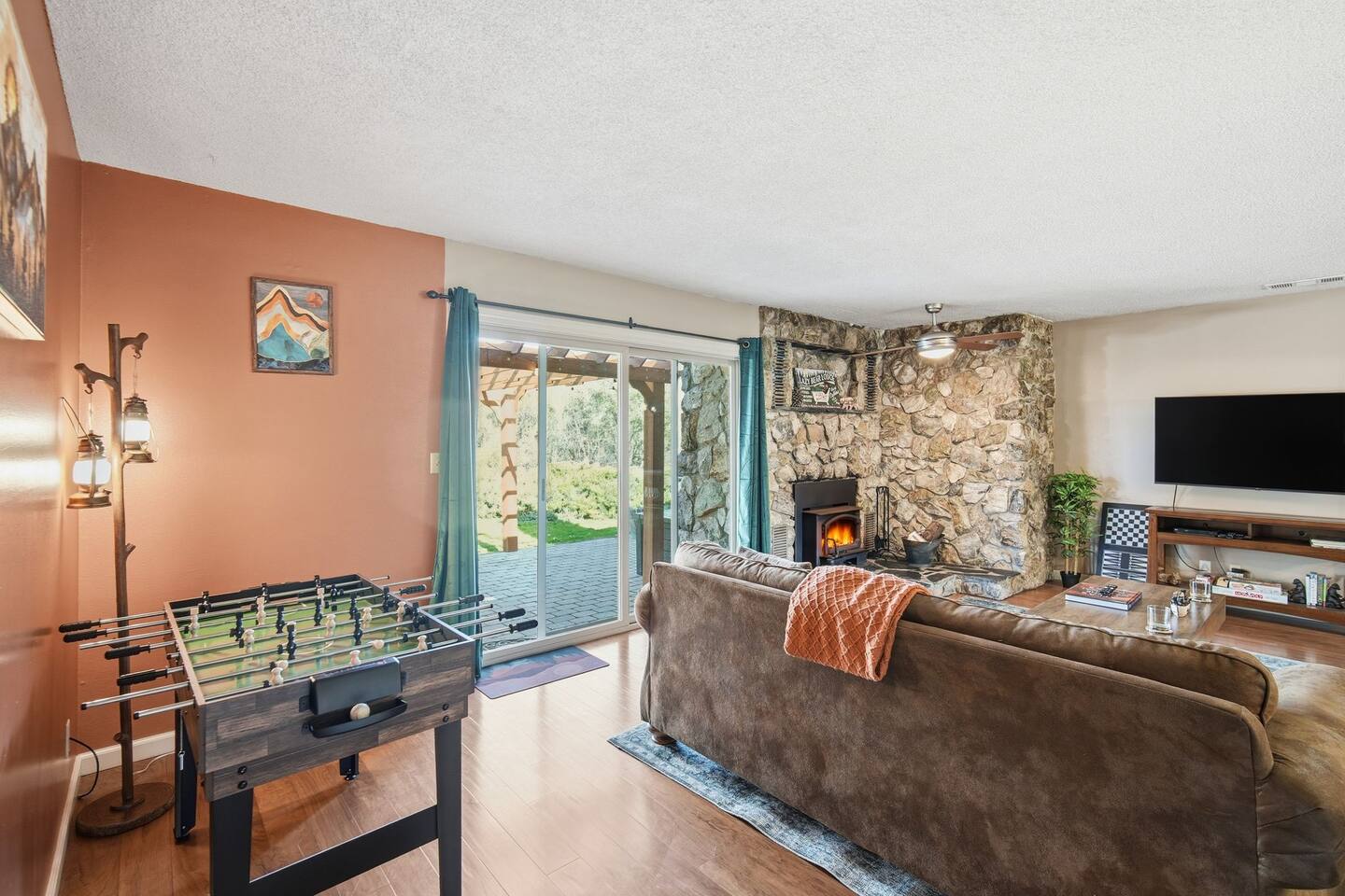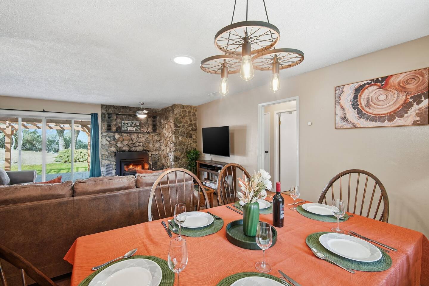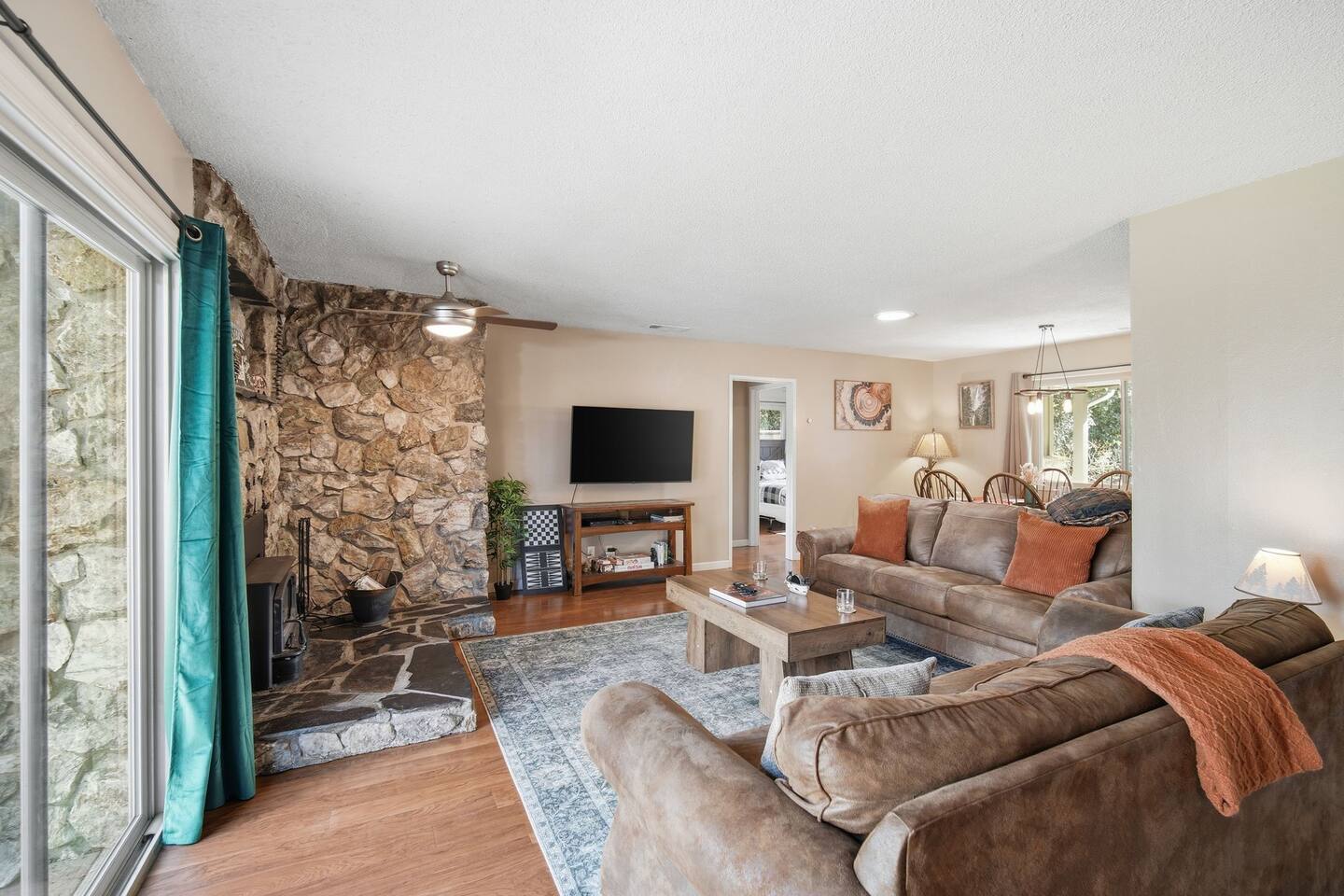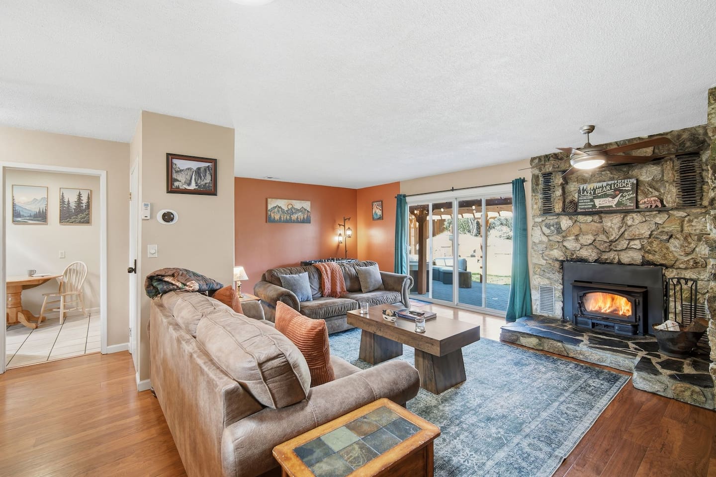 🏠 Main House (3BR / 2BA | Sleeps up to 8) Perfect for families or the main group gathering space. - 2 Queen bedrooms - Kid-friendly bunk room - Cozy living room with queen sofa bed - Fully stocked kitchen - TVs with Netflix in every room 🌲 Outdoor Living Enjoy peaceful forest views and spaces designed to help you unwind after a day of adventure: - private hot tub - Spacious deck - Outdoor patio with fireplace - BBQ grill - Yard games for all ages 📍 Location Highlights - 3 miles to Bass Lake - 20 minutes to Yosemite South Entrance - 10 minutes to town (groceries, dining, coffee, gas,) ✍🏼 Good to Know - Keypad entry - Indoor fireplace available upon request (chimney cleaning fee applies) - EV charger on site (bring your own cable) - Game table with foosball, ping pong, chess, checkers & more