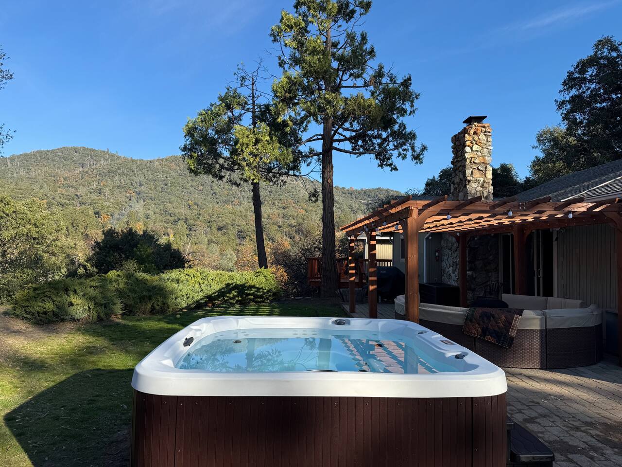 Just 3 miles from Bass Lake & 16 miles (20 mins drive) from Yosemite’s South Entrance, this property is perfect for families & groups! 🌲⛰️ Backyard views, hot tub, outdoor patio, BBQ, deck